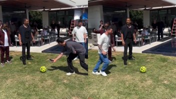 En una de las escenas que se dieron a conocer, se ve al protagonista de la película con Martin Lawrence, coprotagonista de la saga Bad Boys, a punto de patear una pelota. Sin embargo, en el intento, aparece el Messi para interrumpirlos, y mostrarles cómo se hace. Con el detrás de cámara se puede ver como se llevó adelante la filmación de la escena.