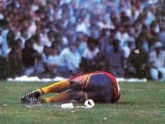 El Cilindro de Avellaneda estaba repleto aquel 22 de diciembre de 1988 a las 16, hora programada para el inicio de un partido cuyo primer tiempo dejó, en términos futbolísticos, poco y nada. La presión era extrema y en el entretiempo los hinchas locales ubicados en la tribuna popular comenzaron a lanzar elementos de pirotecnia y ya cuando los jugadores habían regresado a la cancha, el arquero de Boca, Carlos Navarro Montoya, fue hacia el arco que le tocaba defender, de espaldas a los simpatizantes de Racing, cuando de repente cayó desplomado.