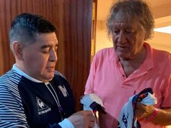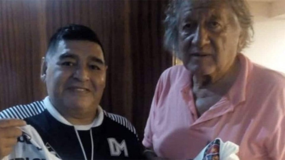 El ex jugador, que falleció a los 74 años, había conocido al Diez en febrero pasado y en ese encuentro el DT de Gimnasia le firmó una camiseta de Central Córdoba de Rosario con la dedicatoria "Al Trinche, que fue mejor que yo".