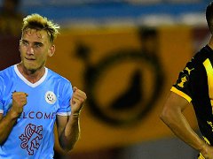 La victoria del Celeste llegó gracias a un doblete marcado por el atacante oriundo de Paraná, a los 32' de la primera parte, y a los 7' del complemento. Luego de sus dos gritos, el ex Colón y Boca se retiró lesionado.