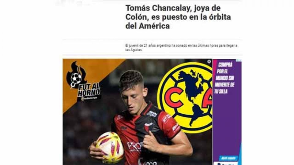 El entrerriano Tomás Chancalay, delantero de Cólon de Santa Fe, es el objetivo de América de México, según lo anunció la prensa de ese país que calificó al joven jugador como "la joya" del equipo argentino.