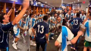 Al ritmo de la música de Callejeros, el plantel argentino celebró la obtención de la Copa América en el vestuario, en donde no faltaron las risas y la emoción, que alcanzaron también al entrenador, Lionel Scaloni, que festejó desaforado junto al plantel.
