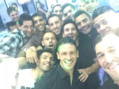 Recién llegados a la Argentina luego de obtener un fantástico segundo puesto en el Mundial de Brasil 2014, el plantel completo de la Selección tuvo su bien ganado festejo privado en el predio de la Asociación del Fútbol Argentino en Ezeiza. Marcos Rojo y Javier Mascherano fueron algunos de los que subieron imágenes del evento a la red social Twitter, incluida una "selfie" de todo el equipo.