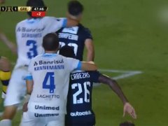 Tras la acción, el delantero oriundo de Chajarí reaccionó y empujó al defensor del Tricolor, que se tiró al suelo. El árbitro Roddy Zambrano, que debió haber cobrado penal y expulsado al brasileño, resolvió la situación amonestando a ambos jugadores.