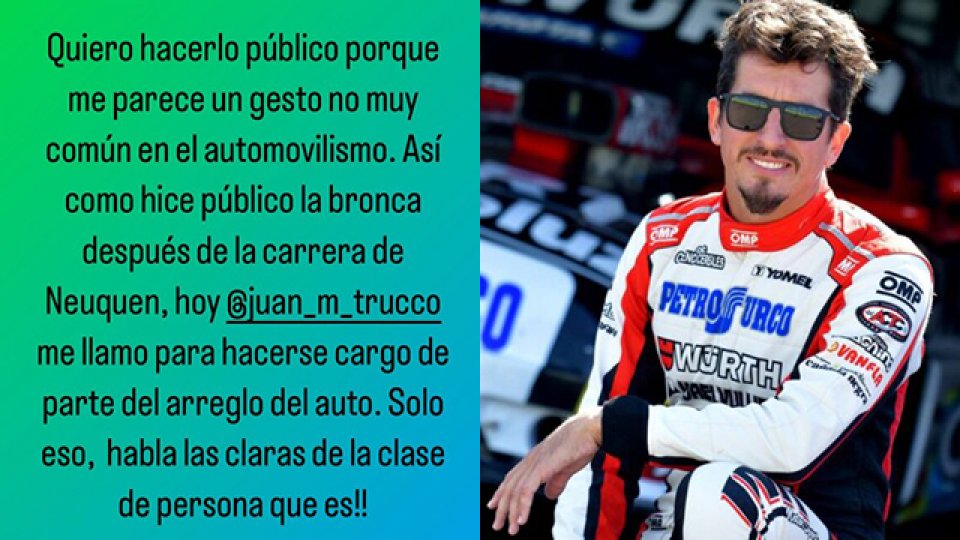 Dentro de la máxima categoría del automovilismo nacional se dio un gesto para resaltar tras la fecha en Neuquén. Ricardo Risatti y Juan Martín Trucco fueron los protagonistas de esta situación particular.