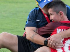 Diego Maradona hizo una pausa en el entrenamiento del Al Fujairah y le cumplió el sueño a un chico que se acercó a la práctica del equipo de Emiratos Árabes.