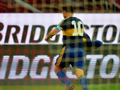 Carlitos no pudo estar el domingo en el homenaje que le hizo la institución ni pudo dedicarle le gol a Dalma junto al resto de sus compañeros. Por eso, optó por hacer algo propio en el duelo ante Inter: primero, lució un brazalete de capitán diferente al habitual, en el cual llevó una foto de Diego con la bandera argentina y la fecha 1960 - ?; y después, mostró la camiseta del Metropolitano '81 tras convertir el 1-0, la casaca con la que Pelusa fue campeón en el Xeneize.