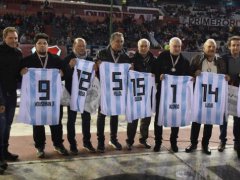 A 40 años del título, el Beto Alonso, Pato Fillol, Larrosa, Olguín, Luque y los familiares de los difuntos R. Galván y Loco Houseman dijeron presente en el estadio. Se llevaron el reconocimiento de todos los presentes y una camiseta con sus respectivos nombres.