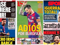 Los medios españoles, que la semana pasada habían adelantado la reunión entre Messi y el entrenador Ronald Koeman, llevaron de inmediato la noticia al primer lugar de sus portadas. Marca, As, Mundo Deportivo, Sport y El País, algunos de los principales diarios, fueron por el mismo lado. "Messi comunica por burofax al Barça que quiere abandonar el club" y "¡Messi comunica al Barça que quiere irse gratis!", fueron algunos de los títulos.