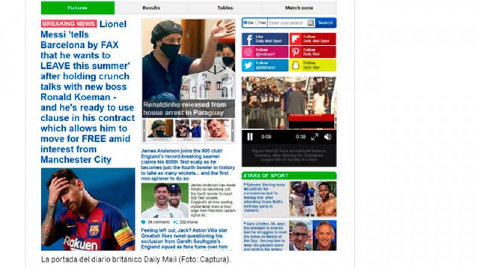 El Daily Mail de Inglaterra salió con un título de último momento, donde dice: "Messi le comunicó por fax al Barcelona que quiere irse este verano".