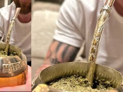 Pero eso no es lo único que llamó la atención. El mate tipo 'calabaza' que utiliza el crack argentino tiene también grabados los nombres de sus hijos, en el borde de metal.
