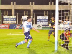Luciano Gozález marca el segundo tanto para el Lobo ante Sarmiento.