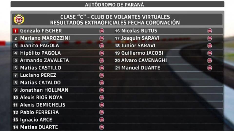 El piloto del centro de la provincia se consagró campeón de la Clase C del campeonato virtual del C.V.E. Fischer condujo a través de un simulador un Fiat TC 850 e hizo un gran trabajo junto a todo su equipo para levantar el trofeo.