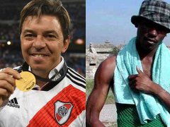 Es una comparación entre el DT de River y El Negro de Whatsapp, el famoso personaje viral que se popularizó en al aplicación de mensajería instantánea y se hizo extensivo al resto de las redes sociales.