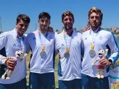 También la <b>medalla de plata quedó en manos de Argentina en la prueba de cuatro pares de remos cortos masculino, donde Santiago Deandrea-Emiliano Calderón-Axel Haack-Agustín Scenna,</b> con un crono de 5:55.23, escoltaron a los uruguayos Marcos Sarraute-Leandro Salvagno-Felipe Klüver-Bruno Cetraro (oro, 5:52.52) y superaron a los chilenos Andoni Habash-Nahuel Reyes-Óscar Vásquez-Pedro Canales (bronce, 6:00.62).
