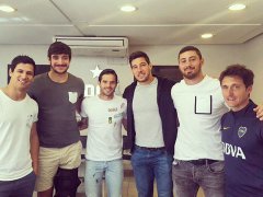 Se trata de cuatro integrantes de Los Pumas, Matías Moroni, Tomás Lavanini, Guido Petti y Javier Ortega Desio, quienes compartieron una charla con Guillermo Barros Schelotto y algunos de los jugadores del plantel, con los cuales también se sacaron fotos.