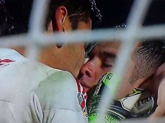 A Tigres se le venía la noche en la final mexicana: tras ganar 3 a 0 en la ida, perdió 4 a 1 con Pumas en la revancha y fue a los penales. Ahí Nahuel Guzmán tapó uno, e Israel Jimenez convirtió el decisivo. En los festejos, el arquero argentino le dio un pico a su compañero.