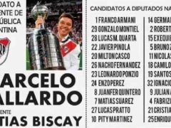 Marcelo Gallardo presidente, Matías Biscay vice y todos los jugadores, entre los que figura el defensor entrerriano Milton Casco, como candidatos a diputados nacionales. El ingenio de los hinchas de River, en medio de un romance interminable con su plantel y cuerpo técnico después de la Final de la Copa Libertadores ganada a Boca, no descansa y, en víspera de las Elecciones Nacionales, publicaron una lista con los protagonistas del Millonario.