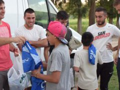 De palabra. Los futblistas de la V azulada habían prometido que si permanecían en el Federal B, les regalaban las camisetas a los chicos de los hogares de niños y jóvenes. Luego hubo un picadito de fútbol entre los presentes.