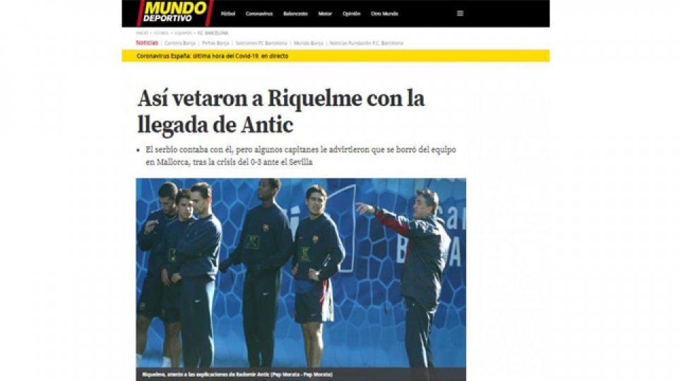 El diario Mundo Deportivo, de España, publicó un artículo en el que reveló el supuesto motivo por el cual Juan Román Riquelme no tuvo continuidad en Barcelona con la llegada de Radomir Antic como entrenador. Según el periódico, se trató de una cama de los referentes.