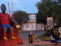En la ciudad de La Plata se realiza cada fin de año la tradicional quema de muñecos para recibir el nuevo calendario y una de las particularidades es que se prenderá fuego la imagen de Arturo Vidal, sentado en un sofá y mirando el Mundial con la camiseta de la selección chilena.