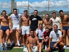 En los videos, se los ve muy animados haciendo distintos tipos de ejercicios con pelota y bajo el radiante sol de Ibiza. Si bien están de vacaciones, aprovecharon el tiempo para seguir manteniéndose en ritmo.