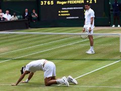 Federer, ganador siete veces del título, nunca había perdido en las semifinales de este torneo. Pero su físico, después del duelo de cuartos contra el croata Marin Cilic, también en cinco sets (tres horas y 17 minutos) ante quien salvó tres bolas de partido, le pasó factura, con problemas en el muslo derecho, y luego en el tobillo izquierdo, tras resbalar en el quinto set, cuando cedió su saque en el cuarto juego.