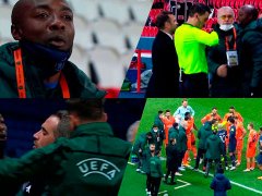 Pierre Webó, asistente del conjunto turco, aseguró que el referí se refirió a él con un calificativo discriminatorio, por lo que el encuentro está momentáneamente suspendido a la espera de una decisión final.