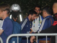 Una decena de hinchas, entre ellos una familia que llegó desde Misiones, solo vieron a los jugadores a la distancia. Messi, ubicado como es su costumbre en uno de los últimos asientos del micro, saludó desde su ventanilla, acción que repitieron otros futbolistas.