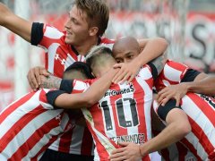 En el inicio del complemento Mura, en una buena acción individual, sorprendió con un tiro bajo y puso el 2-0, y sobre el final Estévez manejó bien un contragolpe para que Pellegrini, en un cara a cara con Ledesma, liquidara el partido.