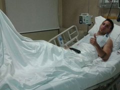 El jugador de Argentinos publicó una foto luego de ser operado, tras el duro cruce con Carlos Tevez, y agregó: "Les quiero agradecer a toda la gente, familia, novia, amigos y conocidos. Con el apoyo de ustedes voy a salir adelante".