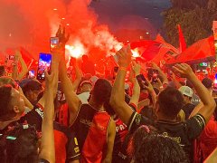 Los fanáticos sabaleros comenzaron a llegar a la plaza y a cantar como muestra de apoyo al equipo. El encuentro se entendió más de lo debido y autoridades de tránsito de Termas de Río Hondo debieron cortar el tránsito en la zona.