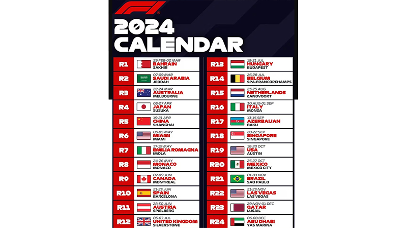 La máxima categoría del automovilismo mundial comienza y finaliza el calendario en Asia, desde el 2 de marzo hasta el 8 de diciembre. Max Verstappen defiende el título y Lewis Hamilton (Mercedes) se despide para llegar a Ferrari en 2025.