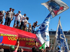 Una caravana interminable lo siguió a los bocinazos, cantos, lagrimas. Marianito saludó a cada uno de la gente que lo espero en su paso arriba del camión de los bomberos. Vecinos, simpatizantes, personas que dejaron sus trabajos por unos instantes y personal de seguridad, todos felicitaron con aplausos, puños apretados al nuevo ídolo del Ovalo.