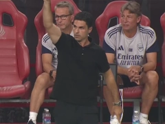 EL GRINGO, EN MARCHA: Heinze, a puras indicaciones durante el amistoso del Arsenal ante Milan en Singapur. ¡Charlas con los centrales, Calafiori y Saliba!