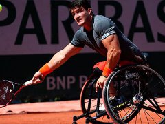 Es el primer singlista argentino en ser número 1 del mundo. Recibe una beca del ENARD pero se compra la ropa y las raquetas para competir en el circuito de tenis sobre silla de ruedas.