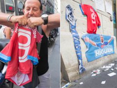 En el amistoso que el equipo celeste le ganó 4-0 al Trento, los fans colgaron una bandera que decía "Higuaín infame", y llenaron Twitter de mensajes manifestando su bronca y de fotos rompiendo sus camisetas e incluso tirándolas al inodoro.