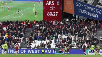 Arsenal aplastó hoy al West Ham por la fecha 24 de la Premier League y el partido dejó una imagen que se viralizó rápidamente en las redes sociales: muchos hinchas del West Ham no aguantaron el 4-0 parcial antes del final del primer tiempo y abandonaron el estadio masivamente en pleno partido.
