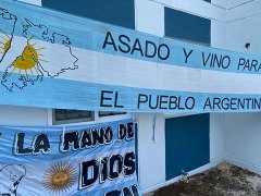 La postal todavía sorprende a los curiosos locales que se acercan a preguntar y sacarse fotos con los hinchas argentinos.