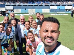 Después de la entrada de los jugadores y las jugadoras a la cancha, frente a cientos de hinchas, hubo una práctica conjunta de fútbol en espacios reducidos entre los dos planteles profesionales.
