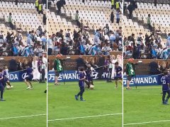 En pleno verde césped del Estadio Lusail, los progenitores de los futbolistas se divirtieron jugando a lo que mejor juegan los argentinos: fútbol. Primero, a puro potrero y como si el contexto no fuera tal, a falta de pelota, la número cinco fue una botella. Luego, ya con la de cuero como juguete, los hijos del capitán argentino llamaron la atención de propios y extraños.