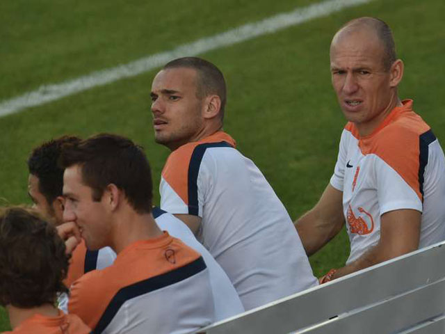 Sin embargo, los que dirán presente son los tres de arriba: Wesley Sneijder, Arjen Robben y Robin van Persie. Por otra parte, aún no quieren descartar a Nigel de Jong. El volante es fundamental para Van Gaal y sería el encargado de marcar a Lionel Messi en caso de jugar. Pese a esto, su presencia es muy complicada. El volante del Milan padece una lesión en la ingle y por tal motivo no estuvo ante los "Ticos".