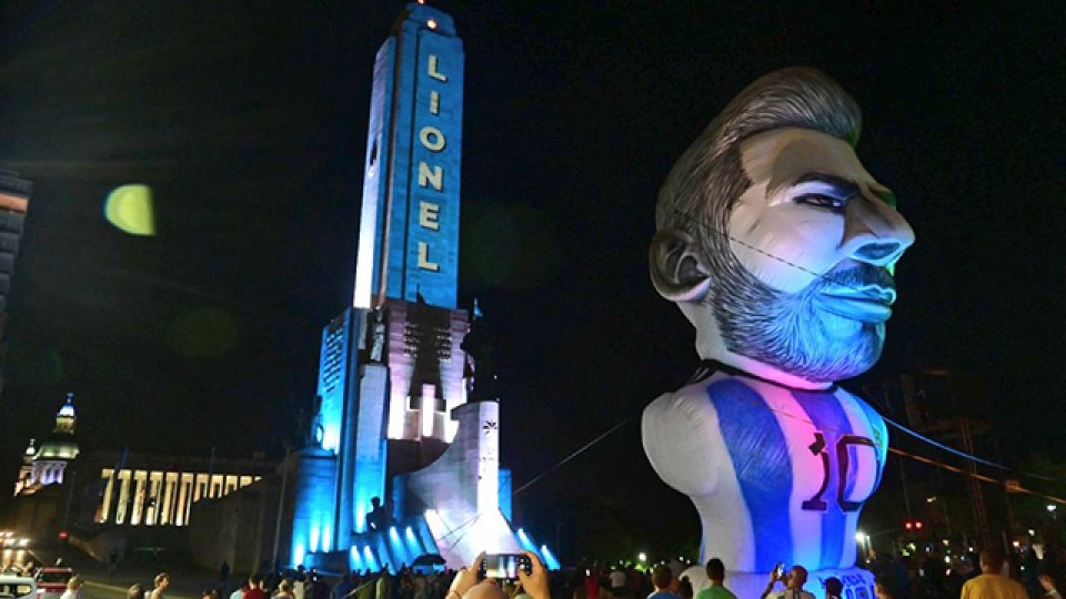 Dos muñecos inflables gigantes de Lionel Messi se colocaron además en el marco del espectáculo denominado "El Monumento se pone la 10", que se extendió entre las 21 y la medianoche.