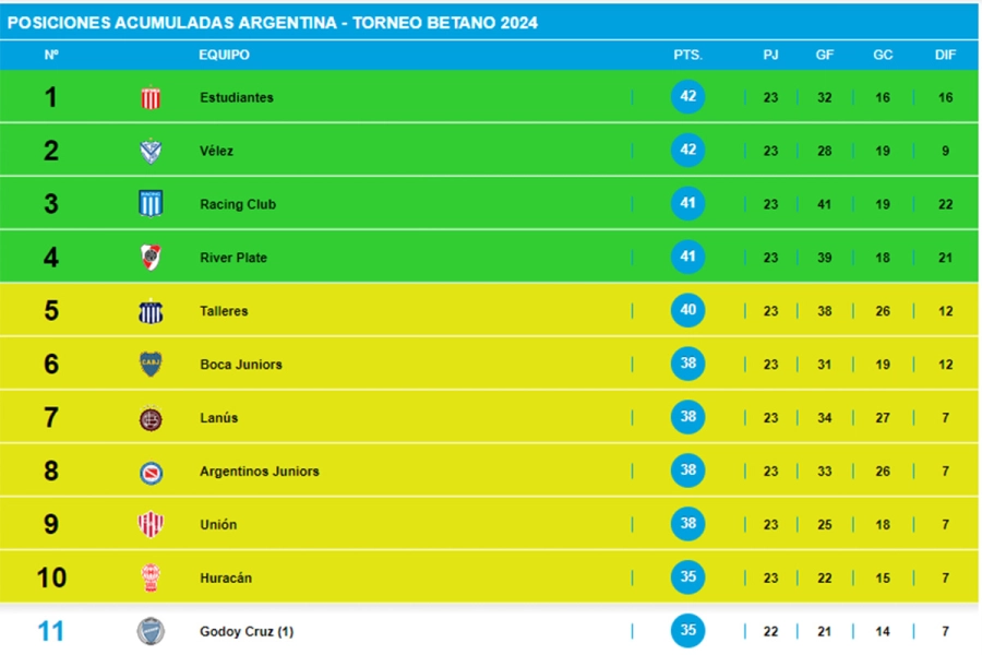 -Los siguientes seis mejores se clasifican a la Copa Sudamericana 2025.
