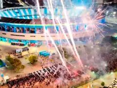 Los hinchas de Racing sin duda escucharon las palabras del DT y no dudaron en apersonarse en las inmediaciones del recinto para despedir al plantel rumbo al hotel con cánticos, banderas, bengalas y fuegos artificiales.
