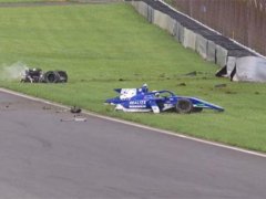 Impresionante accidente de Sacha Fenestraz: se disputaba la tercera vuelta de la sexta fecha y allí lo tocó Naoku Yamamoto, y el auto de Sacha salió descontrolado hacia su izquierda, impactando violentamente contra las protecciones.