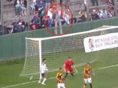 La imagen es increíble. Tremenda. Un hincha de Juventud Antoniana de Salta se cayó del alambrado en el partido ante Mitre de Santiago del Estero (torneo Federal A) y quedó desvanecido. El momento es impresionante porque se ve la jugada y el golpazo detrás del arco. Fue trasladado a un centro médico y solo sufrió heridas leves.