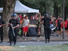 En la zona del Parque Independencia se produjo un cruce entre simpatizantes rojinegros y efectivos policiales. Ante la escalada de violencia, los agentes utilizaron gases lacrimógenos y balas de goma para dispersar a los grupos más exaltados.