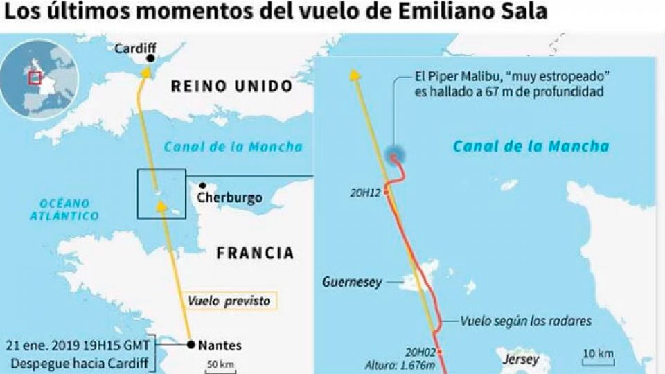 El cuerpo de Emiliano fue encontrado seis días después del accidente, dentro del fuselaje del avión que estaba a 67 metros de profundidad en el Canal de la Mancha.