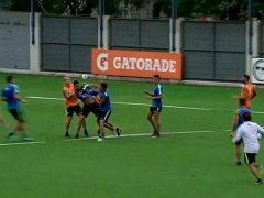 Posteriormente, ambos se dirigieron por caminos separados hacia la zona de vestuarios, donde se juntaron y permanecieron hasta la llegada de Gustavo, quien se dirigió al lugar para dialogar con las partes. A continuación, la práctica continuó con su último tramo y finalizó con ejecuciones de tiro libre de parte de los delanteros junto a los entrenadores.
